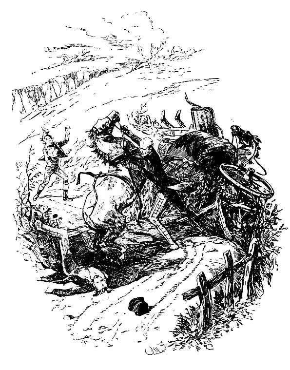– Еще пять секунд, и я не дал бы шести пенсов за голову этого джентльмена, а у него только синяки и порезы, – заметил кучер. – Когда вам придется еще раз побывать в такой переделке – чего, я надеюсь, не случится, – не тяните за повод упавшую лошадь, если на дороге лежит человек. Второй раз это так не сойдет – вы задавите его насмерть; тем бы и кончилось, если б я не подошел вовремя, это уж как пить дать.
