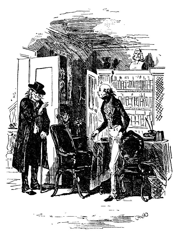 – Я знаю этого молодца, – сказал он, переводя дыхание на каждом слове и указывая дрожащим пальцем на Льюсома. – Таких вралей свет не создавал. Что он там еще придумал? Ха-ха! Да и вы тоже хороши! Ведь этот мой дядюшка впал в детство, хуже чем мой отец в старости, хуже чем вот этот самый Чаффи. За каким чертом вы вломились ко мне, – прибавил он, злобно глядя на Джона Уэстлока и Марка Тэпли (который вошел в комнату вместе с Льюсомом), – для чего вы сюда притащились и привели с собой этих двух идиотов и мошенников? Эй, вы! Откройте дверь! Гоните чужих вон!