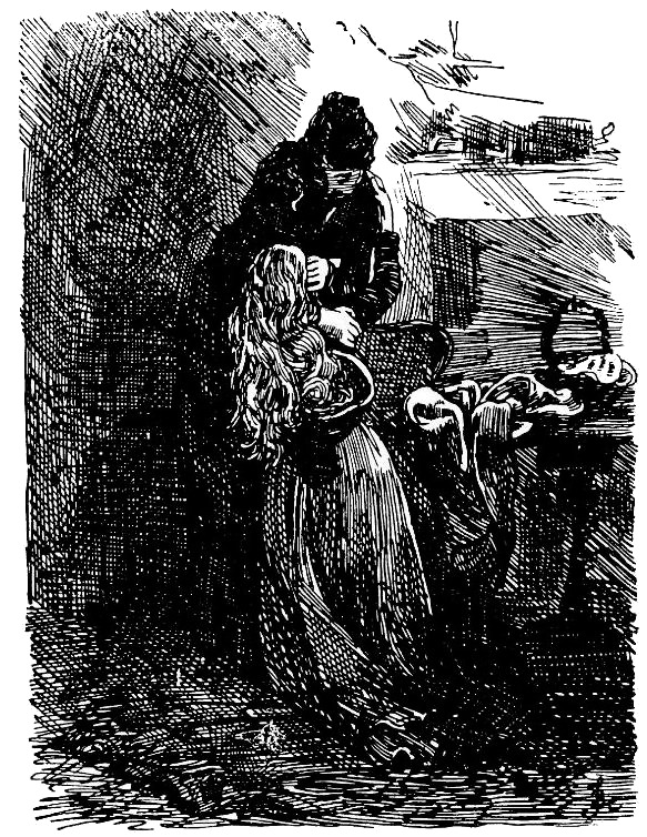 Внезапно в зале началось какое-то волнение и суета. Тоби подумал было, что это гости повскакали со своих мест, чтобы выгнать Ферна. Но в следующую минуту и зала и гости исчезли, и перед ним снова сидела его дочь, склонившись над работой. Только теперь каморка ее была другая, совсем уже нищенская; и Лилиен рядом с ней не было.