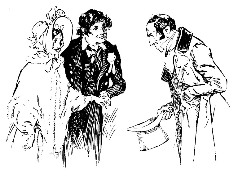 – Что за черт, Джон Пирибингл! – проговорил Теклтон. – Произошло какое-то недоразумение. Я условился с будущей миссис Теклтон, что мы встретимся с нею в церкви, но, по-моему, я только что видел ее на дороге, она направлялась сюда. Ах, вот и она! Простите, сэр, не имею удовольствия быть с вами знакомым, но, если можете, окажите мне честь отпустить эту девицу – сегодня утром она должна поспеть на довольно важное деловое свидание.