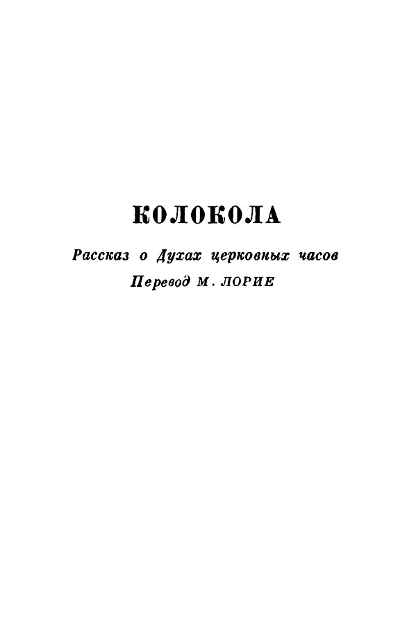 А вверху-то, на колокольне! Вот где разбойник ветер ревет и свищет! Вверху, на колокольне, где он волен шнырять туда-сюда в пролеты арок и в амбразуры, завиваться винтом вокруг узкой отвесной лестницы, крутить скрипучую флюгарку и сотрясать всю башню так, что ее дрожь пробирает! Вверху, на колокольне, там, где вышка для звонарей и железные поручни изъедены ржавчиной, а свинцовые листы кровли, покоробившиеся от частой смены жары и холода, гремят и прогибаются, если ступит на них невзначай нога человека; где птицы прилепили свои растрепанные гнезда в углах между старых дубовых брусьев и балок; и пыль состарилась и поседела; и пятнистые пауки, разжиревшие и обленившиеся на покое, мерно покачиваются в воздухе, колеблемом колокольным звоном, и никогда не покидают своих домотканых воздушных замков, не лезут в тревоге вверх, как матросы по вантам, не падают наземь и потом не перебирают проворно десятком ног, спасая одну-единственную жизнь! Вверху на колокольне старой церкви, много выше огней и глухих шумов города и много ниже летящих облаков, бросающих на него свою тень, – вот где уныло и жутко в зимнюю ночь; и там вверху, на колокольне одной старой церкви, жили колокола, о которых я поведу рассказ.