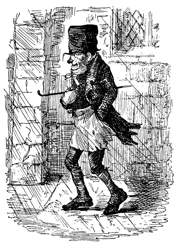 Итак, даже выбираясь из своего уголка, чтобы погреться в дождливый день, Тоби трусил. Своими дырявыми башмаками прокладывая на слякоти ломаную линию мокрых следов; согнув ноги в коленях, засунув тросточку под мышку, дуя на озябшие руки и крепко их потирая, потому что очень уж плохо защищали их от холода поношенные серые шерстяные рукавицы, в которых отдельная комнатка отведена была только большому пальцу, а остальные помещались в общей зале, – Тоби трусил и трусил. И сходя с панели на мостовую, чтобы посмотреть вверх на звонницу, когда заводили свою музыку колокола, Тоби тоже передвигался трусцой.