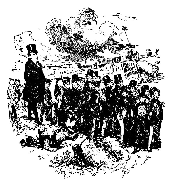 К тому времени Поля окружили остальные ученики (по-прежнему – за исключением окаменевшего мальчика). Они были вежливы, но бледны и разговаривали тихо; и были так подавлены, что по сравнению с расположением духа этой компании юный Байтерстон был настоящим Миллером, или «Полным собранием шуток»[54]54