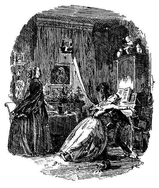 Мисс Токс налила в маленькую зеленую лейку воды из кувшина и, случайно подняв затем глаза, была столь изумлена тем многозначительным видом, с коим миссис Чик обратила к ней лицо, что временно поставила лейку на стол и сама села на стул рядом с нею.