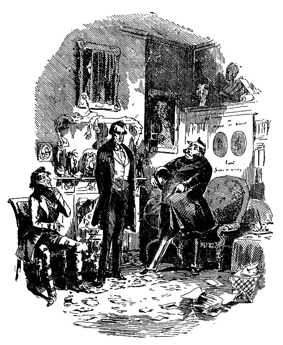 – Итак, Домби. – говорит майор, – после того, как наш друг Финикс с чрезвычайным красноречием, равного коему старый Дж. Б. никогда не встречал, да, клянусь Рогом, сэр, никогда! – майор сделался совершенно синим и стиснул середину своей трости, – после того, как наш друг Финикс изложил все обстоятельства, касающиеся этой леди, я воспользуюсь нашей дружбой, Домби, чтобы осветить вопрос с другой стороны. Сэр, – говорит майор с лошадиным покашливанием, – свет в таких случаях предъявляет свои требования, которые должны быть удовлетворены.