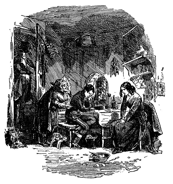 В тот самый день, вечер которого описан в последней главе, когда светское общество чрезвычайно интересовалось побегом жены мистера Домби, за окном комнаты, где брат и сестра сидели за ранним завтраком, неожиданно мелькнула тень человека, направлявшегося к крылечку. Это был Перч, рассыльный.