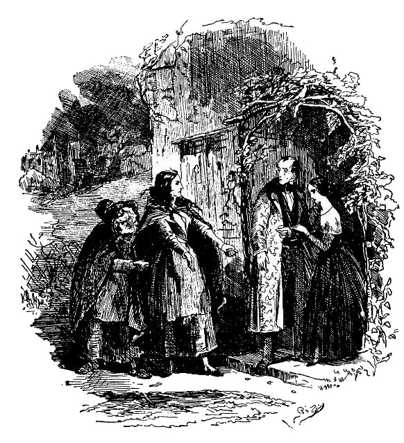 – Моя ненаглядная Эдит! – раздается взволнованный голос на площадке лестницы. – Мой дорогой Домби! – И короткие рукава обвиваются вокруг счастливой четы, заключая в объятия каждого из супругов по очереди.