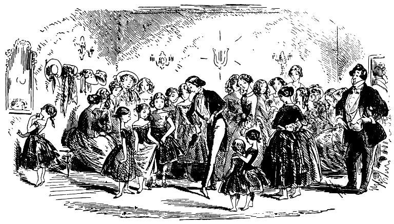 Я отошла и села на скамью между Пищиком (он тоже здесь был завсегдатаем и уже привычно забрался в уголок) и пожилой дамой сурового вида, которая пришла сюда с двумя племянницами, учившимися танцевать, и с величайшим возмущением смотрела на башмаки Пищика. Принц Тарвидроп провел пальцами по струнам своей "киски", а ученицы стали в позицию перед началом танца. В эту минуту из боковой двери вышел мистер Тарвидроп-старший во всем блеске своего хорошего тона.