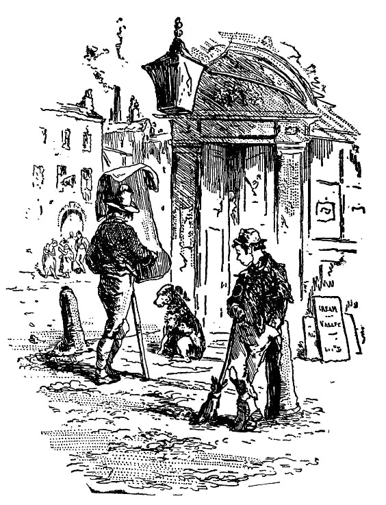 Джо внимательно слушает ее слова; повторяет их про себя, постукивая по ручке метлы, и находит не совсем понятными; молчит, размышляя о их значении; наконец, уразумевает их смысл и, удовлетворенный, кивает лохматой головой.
