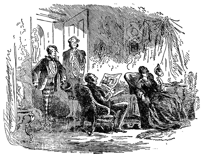 Сэр Лестер читает с бесконечной серьезностью и важностью; но вот дверь открывается, и Меркурий в пудреном парике докладывает о приходе посетителя в следующих, необычных для него выражениях: