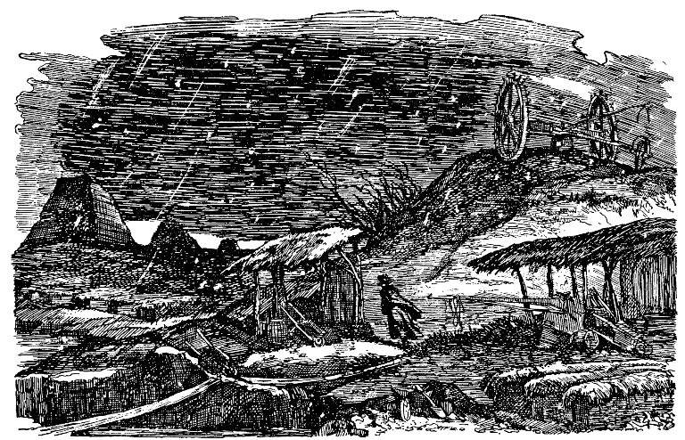 Где она? Живая или мертвая, где она? Если бы тот платок, который он складывает и бережно прячет, волшебной силой показал ему комнату, где она его нашла, показал окутанный мраком ночи пустырь, вокруг домишка кирпичника, где маленького покойника покрыли этим платком, сумел бы Баккет выследить ее там? На пустыре, где в печах для обжига пылают бледно-голубые огни; где ветер срывает соломенные кровли с жалких кирпичных сараев; где глина промерзла, а вода превратилась в лед и чудится, будто дробилка, которую, целый день шагая по кругу, приводит в движение изможденная слепая лошадь, это не просто дробилка, но орудие пытки для человека, – на этом гиблом, вытоптанном пустыре маячит чья-то одинокая тень, затерянная в этом скорбном мире, засыпаемая снегом, гонимая ветром и как бы оторванная от всего человечества. Это женщина; но она одета как нищая, и в подобных отрепьях никто не пересекал вестибюля Дедлоков и, распахнув огромную дверь, не выходил из их дома.