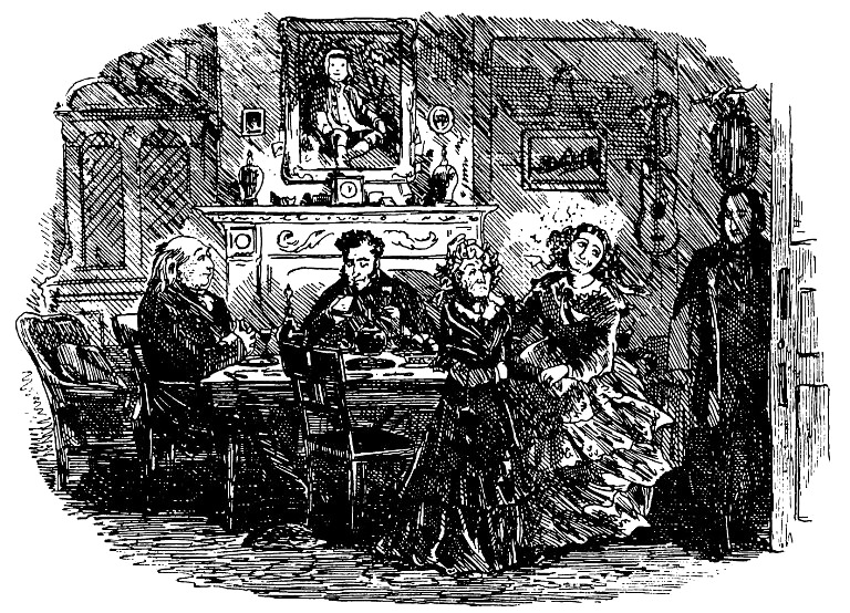Тетушка мистера Ф. хранила безмолвие и только с уничтожающим презрением смотрела на Кленнэма; но когда убрали со стола и подали десерт, она разразилась новым замечанием, внезапным, словно бой часов, и столь же чуждым течению застольной беседы.