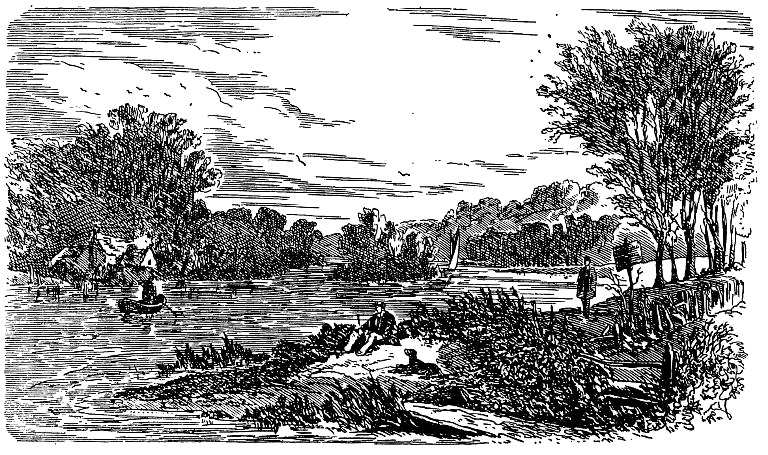 Наутро, перед завтраком, Артур решил побродить по окрестностям. Погода была отменная, до завтрака оставалось не менее часа, и, перебравшись через реку, он пошел по тропинке, извивавшейся среди лугов. Когда тропинка вновь привела его к берегу, он увидел там какого-то путника, который дожидался переправы и криками торопил перевозчика, замешкавшегося на другой стороне.