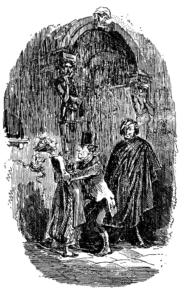 – Я здесь, не беспокойтесь! Сейчас Эффери принесет вам лампу! – Затем, взглянув на упомянутую особу, которая, тщетно стараясь отдышаться, надевала свой чепец, он прикрикнул: – Ну, марш наверх, живо! – после чего обратился к незнакомцу и сказал: – Итак, сэр, что вам угодно?