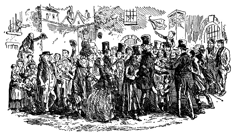 Наконец троекратное «ура!» оповестило, что он вышел за ворота и что Маршалси отныне – сирота. Еще не замерли отголоски в тюремных стенах, а все семейство уже сидело в карете, и грум приготовился убрать подножку.