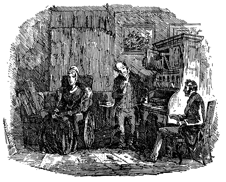 В понедельник утром, едва на городских часах пробило девять, мистер Иеремия Флинтвинч, с обычным своим видом срезанного с веревки удавленника, подкатил кресло миссис Кленнэм к высокому бюро, стоявшему у стены. Дождавшись, пока она его отперла, откинула крышку и расположилась перед ним поудобнее, Иеремия удалился – быть может, пошел повеситься более прочно, – и в комнату вошел Артур Кленнэм.