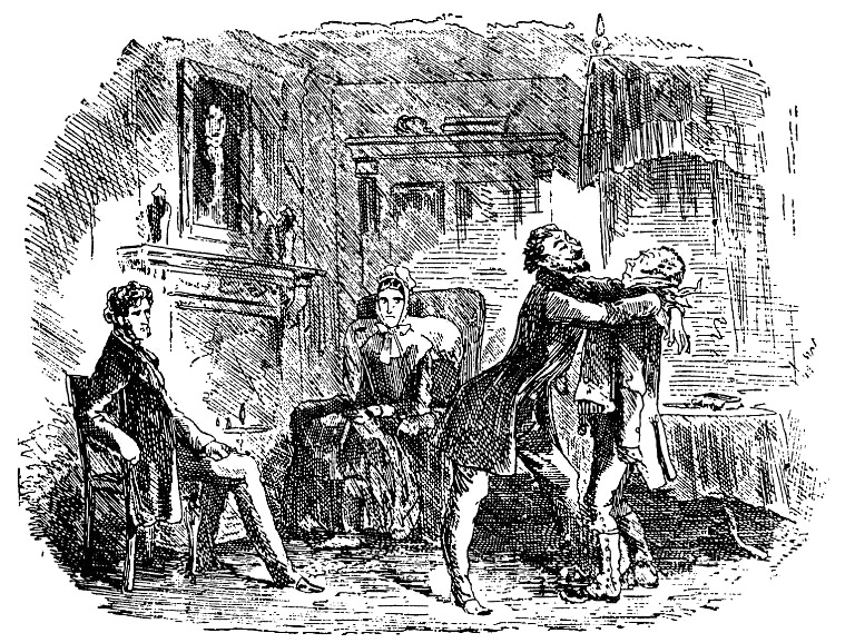 Снизу послышалось щелканье отпираемого замка, и вслед за тем хлопнула дверь. Через минуту в комнату пошел мистер Флинтвинч, завидя которого гость поспешно вскочил и заключил его в объятия.