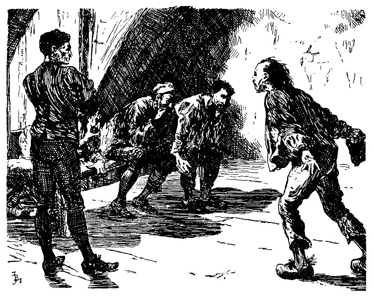 Человек с алчным лицом переглянулся с остальными троими, провел дрожащей рукой по губам и стал кусать палец, словно не в силах побороть снедавший его голод.