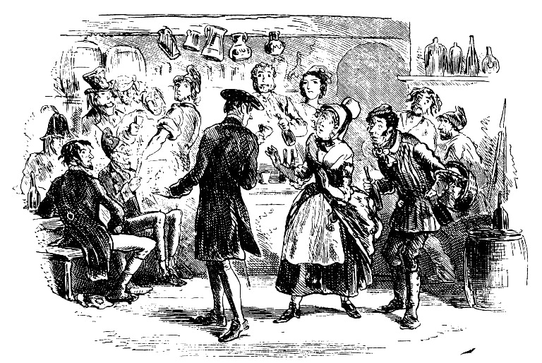И правда, можно было подумать, что мистеру Кранчеру явилось привидение. Но он только хлопал глазами и ничего не говорил. Мисс Просс долго рылась в своем ридикюле, слезы застилали ей глаза; наконец она с трудом отсчитала деньги и расплатилась за вино. А Соломон тем временем, повернувшись к приверженцам Славного Республиканца Брута, что-то объяснял им на французском языке, после чего те, видя, что им нечего дожидаться, вернулись к своим столикам.