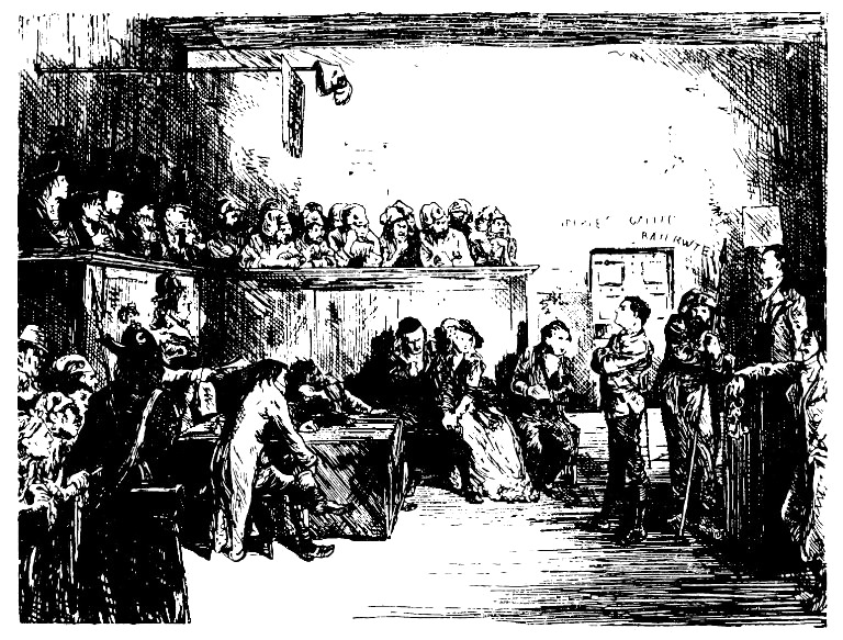 Мистер Лорри уже ушел, когда он вернулся, и нетрудно было догадаться, куда он ушел. Сидни выпил чашку кофе с хлебом, умылся, переоделся и отправился в суд.