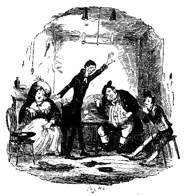 – Я тебе скажу, в чем тут дело, Сэмивел, мой мальчик, – прошептал на ухо своему сыну старый джентльмен после долгого и упорного созерцания своей супруги и мистера Стиггинса. – Мне кажется, у твоей мачехи во внутренностях что-то неладно, да и у красноносого также.