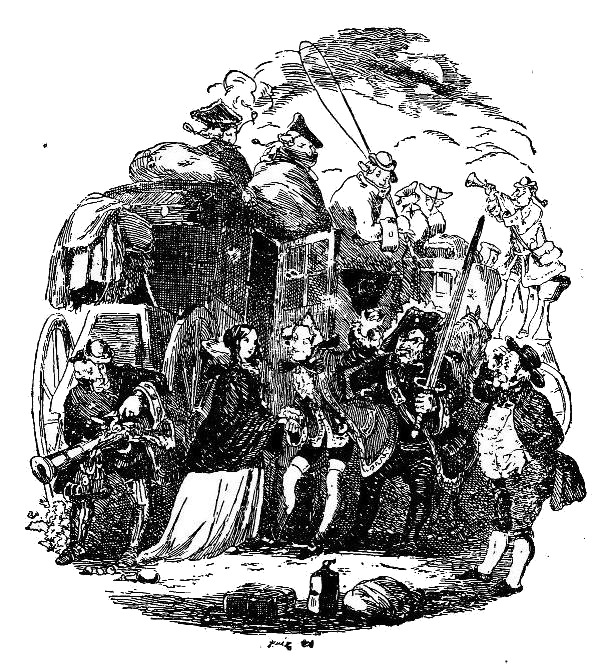Как только пробили часы, на этом безлюдном, тихом пустыре закипела жизнь и поднялась суматоха. Дверцы старых карет снова висели на петлях, появилась обивка, железные части блестели, как новые, краска вернулась на свое место, фонари были зажжены, подушки и плащи лежали на козлах, носильщики совали пакеты в ящики, кондуктора прятали почтовые сумки, конюхи поливали водой починенные колеса, какие-то люди суетились, прилаживая дышла к каретам; появились пассажиры, привязывали чемоданы, впрягали лошадей, – короче, было совершенно ясно, что все эти почтовые кареты вот-вот тронутся в путь. Джентльмены, дядя так широко раскрыл глаза, что до последней минуты своей жизни не переставал удивляться, как ему удалось снова их закрыть.