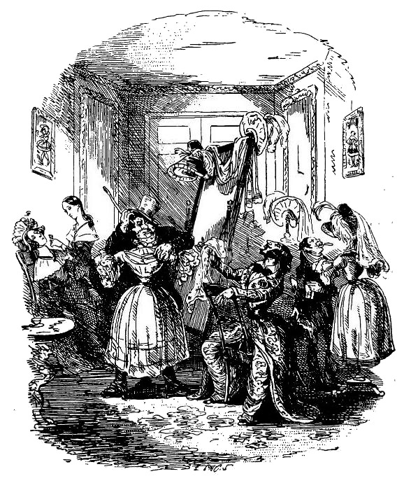– Ах! – воскликнул мистер Манталини. – Помешали! – И столовый нож мгновенно исчез в кармане халата мистера Манталини, в то время как глаза мистера Манталини дико выкатились, а волосы, развевавшиеся в диком беспорядке, перепутались с бакенбардами.