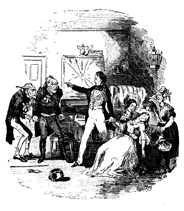 – Посмотрите-ка, Грайд, – сказал Ральф, – этот мальчишка (признаюсь с горестью, сын моего брата, распутник и мерзавец, запятнавший себя всеми корыстными и гнусными преступлениями), этот мальчишка пришел сегодня сюда с целью расстроить торжественную церемонию, зная, что в результате его появления в чужом доме в такое время он будет вышиблен пинками и его поволокут по улице, как бродягу, – а он и есть бродяга, – этот мальчишка, заметьте, приводит с собой сестру в виде защитницы. Он думает, что мы избавим глупую девушку от унижений и оскорблений, которые для него не новость. И даже после того, как я предупредил ее о неизбежных последствиях, он, как видите, все еще удерживает ее при себе и цепляется за ее юбку, как трусливый ребенок за юбку матери. Ну, не превосходный ли это человек, который говорит такие громкие слова, какие вы сейчас от него слышали?