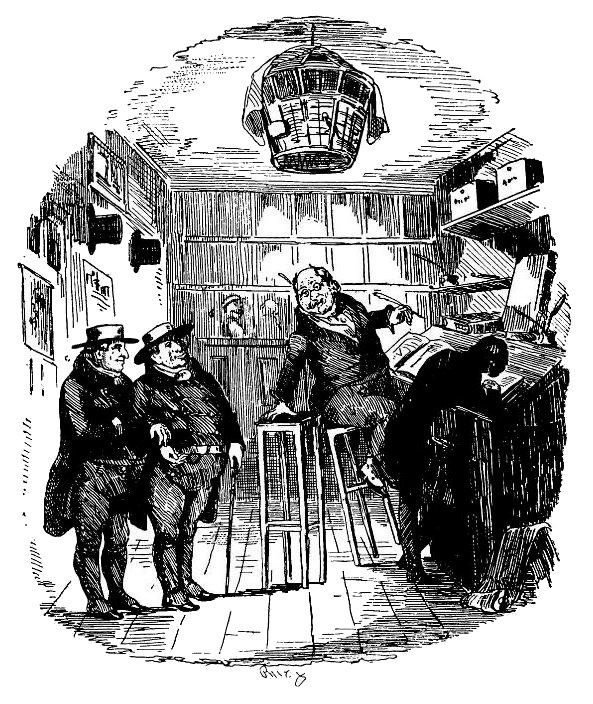 Мистер Кенуигс собирался сделать какое-то замечание, по всей вероятности подтверждающее это мнение, но тут другая замужняя леди, которая зашла подбодрить миссис Кенуигс и помочь прибрать все, что могло иметь отношение к закуске и выпивке, просунула голову и доложила, что она секунду назад спустилась вниз, услышав колокольчик, и что у двери ждет какой-то джентльмен, который во что бы то ни стало хочет видеть мистера Кенуигса.