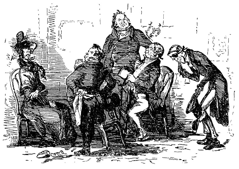 Покончив с Самсоном Брассом, трое джентльменов поспешили на квартиру к мистеру Свивеллеру, у которого дела так быстро пошли на поправку, что он мог целых полчаса просидеть в постели и притом вести оживленный разговор со своими гостями. Миссис Гарленд уже успела уехать домой, но мистер Авель был все еще здесь. Рассказав мистеру Свивеллеру о своих успехах, оба Гарленда удалились вместе с одиноким джентльменом – как это, видимо, было между ними условлено – и оставили больного в обществе нотариуса и маленькой служанки.