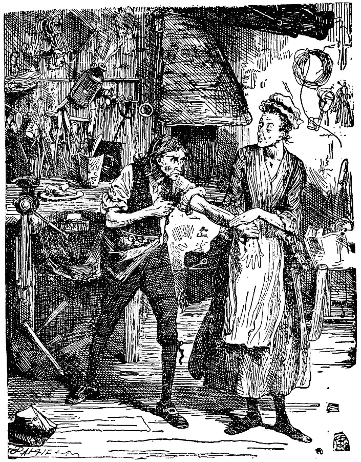 – Мне ведено проводить вас обратно домой, – отвечал Хью, украдкой поглядывая на дочку слесаря. – Это он меня послал.