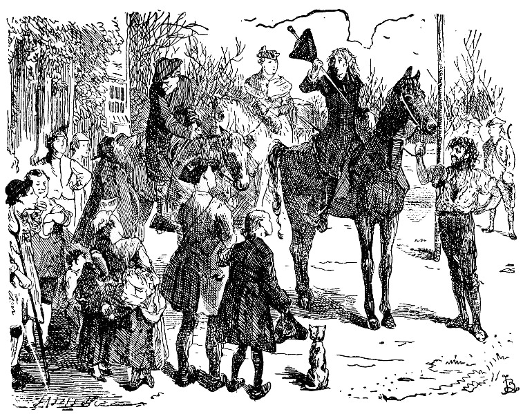 Так проехал он по Стрэнду, затем улицей Ласточек до Оксфорд роуд и, наконец, добрался до своего дома на Уэлбек-стрит близ Крвендиш-сквера. Здесь он, взойдя на крыльцо, простился с проводившими его до самого дома двумя-тремя десятками зевак, воскликнув: «Джентльмены, долой папистов! Прощайте, храни вас бог!» Такого короткого прощанья никто не ожидал, оно вызвало общее недовольство и крики – «Речь! Речь!» Это требование было бы выполнено, если бы рассвирепевший Джон Груби не налетел на толпу с тремя лошадьми, которых он вел в конюшню, и не заставил всех разбежаться по соседним пустырям, где они принялись играть в орлянку, чет и нечет, лунку, стравливать собак и предаваться другим невинным протестантским развлечениям.