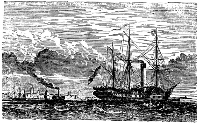 Каюта ширилась и росла у нас на глазах, а к этому времени она превратилась в нечто и вовсе грандиозное, и иллюминатор казался чуть ли не окном-фонарем, выходившим на морской простор. Итак, мы снова поднялись на палубу в наилучшем расположении духа, а там шла такая кипучая подготовка к отплытию, что поневоле становилось весело на душе и кровь бурлила и быстрее бежала по жилам в это ясное морозное утро. Вокруг величавые суда медленно покачивались на волнах, и маленькие катера с шумом плескались в воде, а на пристани стояли толпы народа, которые «в трепетном восхищении» взирали на знаменитый быстроходный американский корабль. Несколько человек «принимали на борт молоко», или, иначе говоря, загоняли на пароход корову; другие – доверху набивали ледники свежей провизией: мясом и зеленью, бледными тушками молочных поросят, десятками телячьих голов, говядиной, телятиной, свининой и несметным количеством дичи; третьи – сматывали канаты и возились с конопатью; четвертые – спускали в трюм тяжелые грузы, а за огромной грудой пассажирского багажа едва виднелась голова эконома, взиравшего на все с видом полнейшей растерянности; и казалось, нигде, а главное – ни в чьих мыслях нет места ничему, кроме приготовлений к этому внушительному путешествию. Все было неотразимо прекрасно: и яркое холодное солнце, и бодрящий воздух, и подернутая рябью вода, и на палубе тонкая белая корочка утреннего ледка, который ломается с резким и веселым хрустом, едва на него ступишь. Когда же мы снова очутились на берегу и, обернувшись, увидели на мачте веселые яркие флажки, обозначавшие название судна, а рядом с ними полоскавшийся на ветру красивый американский флаг с полосами и звездами, нам вдруг показалось, будто все это и огромное расстояние в три с лишним тысячи миль, и долгие шесть месяцев отсутствия – уже промелькнуло и растаяло в тумане прошлого; будто судно отплыло в Америку и снова вернулось обратно, и уже наступила весна, и мы только что прибыли в Кобургский док в Ливерпуле.