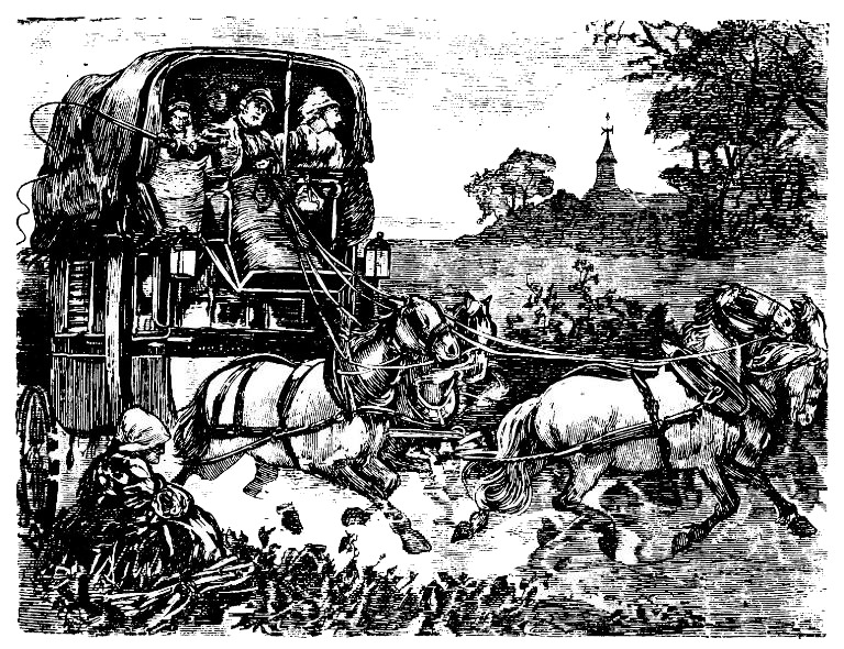 У нас четверка лошадей и один форейтор с очень длинным бичом, правящий своею упряжкой наподобие курьера из Санкт-Петербурга в цирке Астли или Франкони[140]140