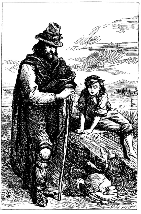 [Закрыть], с голыми по колено ногами и босые; на каждом из них рубашка, короткие штаны и красный шарф, а на шее не то священные реликвии, не то амулеты, похожие на леденцы с крещенского пирога. Старик жаждет обратить меня в католичество и частенько мне проповедует. Мы иногда сидим вечерком на камне у двери – как Робинзон Крузо и Пятница, поменявшиеся ролями, – и он, в целях моего обращения, вкратце рассказывает историю св. Петра, главным образом, я полагаю, из-за неизъяснимого удовольствия, которое доставляет ему подражание петуху[166]166