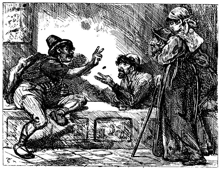 Играют двое. Один из них называет какое-нибудь число, например наивысшее – десять. Одновременно тремя, четырьмя или пятью пальцами он обозначает, какую долю его он берет на себя; второй игрок, наугад, не видя руки партнера, должен в свою очередь показать столько пальцев, чтобы числа, обозначенные обоими игроками, составили в сумме названное первоначально. Их глаза и руки до того наловчились, и они проделывают это с такой невероятною быстротой, что непосвященному наблюдателю почти невозможно уследить за ходом игры. Но посвященные, которые всегда тут как тут, с жадным вниманием следят за игрой. И так как зрители неизменно готовы примкнуть в случае спора к той или другой стороне и часто разделяются на враждебные партии, здесь нередко поднимается неистовый крик. Да и сама игра никоим образом не может быть названа тихой, так как числа выкликаются пронзительно-резкими голосами, и притом так стремительно сыплются одно за другим, что еще немного, и их было бы не учесть. В праздничный вечер, стоя у окна, или прогуливаясь в саду, или даже бродя где-нибудь в пустынных местах, вы слышите, как в эту игру играют сразу во множестве кабачков, и, взглянув поверх кустов винограда или обогнув какой-нибудь угол, обязательно обнаружите кучку отчаянно горланящих игроков. Замечено, что у большинства людей существует явная склонность называть иные числа чаще других; и наблюдать настороженность, с которою два зорких партнера изучают друг друга, чтобы обнаружить в противнике эту слабость и приспособиться к ней, весьма любопытно и занимательно. Эффекту, производимому этой игрой, в немалой мере способствует внезапность и порывистость жестикуляции; играющие ставят по полфартинга с такой страстностью, как если б ставкою была их жизнь.