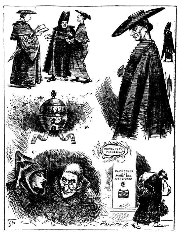 В помещении царит тишина, нарушаемая лишь кое где шепотом, и глаза всех присутствующих прикованы к юному служителю фортуны. Имея в виду ближайшую лотерею, они начинают осведомляться о его возрасте, и есть ли у него братья и сестры, и сколько лет его матери, и сколько – отцу, и есть ли у него прыщи, или родимые пятна, и где они, и сколько их счетом. Прибытие предпоследнего из опаздывающих судей (маленького старичка, которого все боятся, так как считается, что у него дурной глаз), несколько отвлекает внимание, которое могло бы быть отвлечено значительно больше, если бы вслед за старичком не появился новый предмет всеобщего интереса: священник, присланный служить молебен, и сопровождающий его грязный-прегрязный маленький мальчик, несущий священное облачение и сосуд со святою водой.