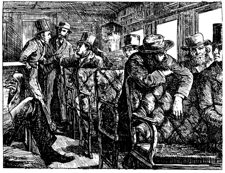 В дамском вагоне едет немало джентльменов, путешествующих с дамами. Но немало и дам, которые едут одни, ибо любая дама может спокойно проехать из конца в конец Соединенных Штатов, будучи уверена, что встретит везде самое галантное и внимательное отношение. Кондуктор, или билетер, или дежурный, или – словом, как бы его ни звали – не носит формы. Он прогуливается по вагону, выходит и снова входит, когда ему заблагорассудится; а то станет, прислонясь к косяку, и, засунув руки в карманы, смотрит на вас, если вы иностранец, или завяжет беседу с кем-нибудь из пассажиров, кто ему больше нравится. Все пассажиры извлекают великое множество газет, но лишь немногие читают их. Кто угодно может вступить с вами в беседу или с тем, кто ему больше по душе. Если вы англичанин, то вас спросят, правда ли, что эта дорога совсем такая же, как в Англии. И если вы скажете «Нет», то вам скажут «Да?» (вопросительно) и спросят, чем же она отличается от английских. Вы перечислите отличия – одно за другим и после каждого вам скажут «Да?» (все так же вопросительно). Затем ваш собеседник высказывает предположение, что в Англии не ездят так быстро, а когда вы говорите, что ездят, говорит снова «Да?» (все так же вопросительно), и ясно, что он этому не верит. После долгой паузы он замечает, обращаясь то ли к самому себе, то ли к рукоятке своей трости, что «янки[41]41