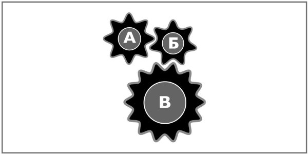 Попробуйте мысленно покрутить-повертеть эту задачу: у шестеренки А 8 зубцов, у шестеренки Б – 6, а у шестеренки В – 14. Сколько оборотов должна совершить шестеренка А, чтобы привести все три шестерни в изначальное положение?