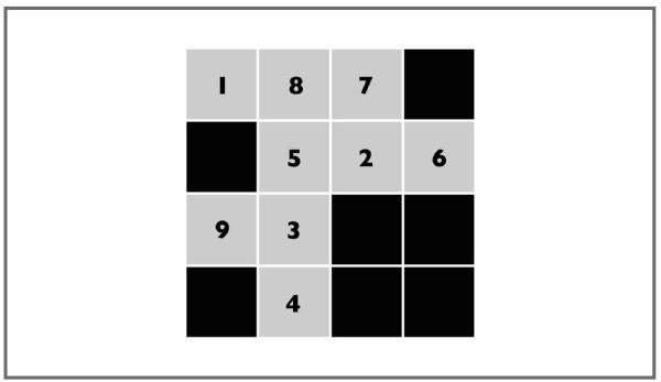 Числа находятся на своих местах в законченном кроссворде, как показано ниже. Любая подобная задача, развивающая сосредоточенность и сфокусированность внимания, будет полезна для памяти.