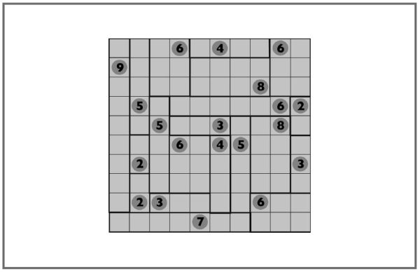 Линии, проведенные в решетке шикаку так, как показано ниже, делят ее на нужное число прямоугольников.