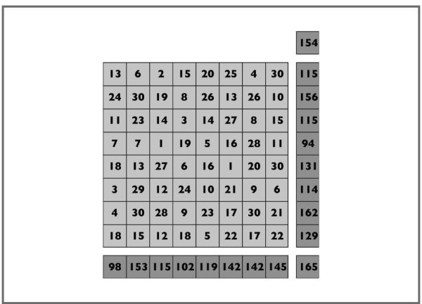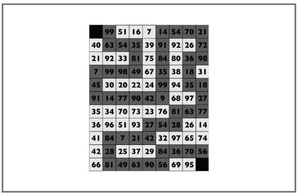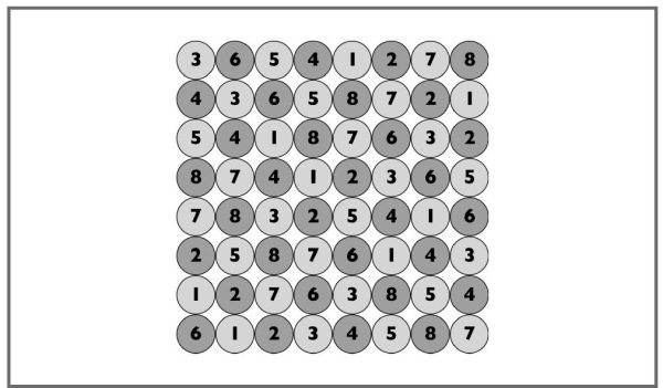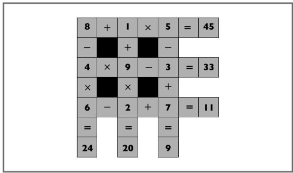 Точное расположение чисел показано в решетке ниже. Если числовые задачи не слишком легко вам даются, работа над ними принесет вам существенную пользу.