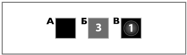 Фрагменты А, Б и В показаны ниже: А должен быть темным, Б – светлым с числом 3, а В – темным с числом 1 и кнопкой, как показано на рисунке.