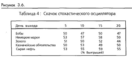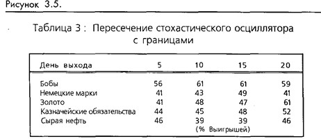 Это стандартное контртрендовое вхождение: покупайте, когда %К пересекает снизу вверх %D после того, как осциллятор опустился ниже 25. Продавайте, когда %К пересекает %D сверху вниз после подъема выше 75. Пересечения между 26 и 74 игнорируются. (Смотрите рисунок 3-5.)