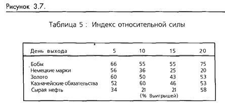 Индекс относительной силы Уайлдера – это еще один популярный контртрендовьж метод. Мы использовали распространенный 14-периодный RSI, продавая на уровне перекупки (выше 75) и покупая на перепродаже (ниже 25), (Смотрите рисунок 3-7.)