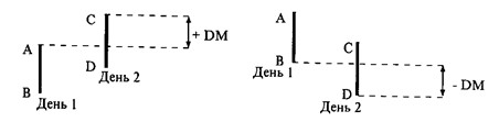 c) Расстояния между сегодняшней впадиной и вчерашним закрытием.