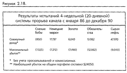 Уильям Гэлэчер в своей изумительно остроумной книге "Winner Takes All: A Privateer's Guide to Commodity Trading" протестировал 10-дневную систему прорыва на 10 различных товарах за период 130 недель. Результаты показали, что этот простой 10-дневный канал произвел доход на заслуживающем уважения уровне 24 процентов годовых. (Кстати, мы не знаем издается ли еще книга Гэлэчера, но если вы ее увидите, купите. Это одна из наших любимых работ.)