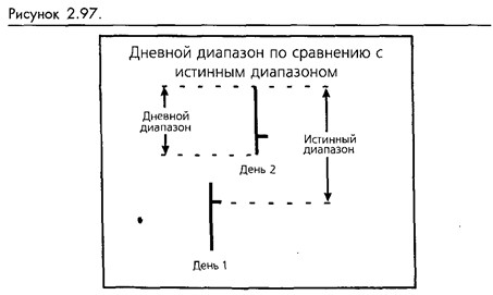 Это простое определение диапазона в основном неплохо работает, но оно не берет в расчет дни с экстремальным ценовым движением. Лимитированные дни, например, могут обладать очень узким диапазоном, но рынок, очевидно, весьма волатилен, и волатильность нарастает. Подобным образом, день с разрывом на открытии, в который торговля происходит за границами диапазона предыдущего дня, являет собой пример нарастающей волатильности, даже если реальный диапазон этого дня меньше, чем у дня предыдущего.