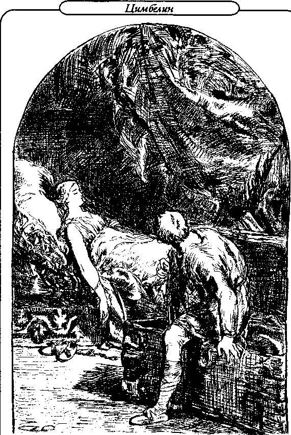 Имогена и ее господин были взяты в плен и приведены к Цимбелину. Вместе с ними попался и Иаким, злейший враг Имогены, который служил офицером в римской армии. Когда эти пленники предстали перед королем, Постум был приведен также, чтобы выслушать от Цимбелина смертный приговор. В то же самое время Белларий с Поли-дором и Кадвалем были представлены королю, чтобы получить должную награду за те услуги, которые они ему оказали своей храбростью. Пиза-нио присутствовал там в качестве приближенного короля. Таким образом, перед лицом короля сошлись люди с самыми разнообразными надеждами и стремлениями: Постум и Имогена с ее новым повелителем; верный слуга Пизанио и коварный друг Иаким; тут же были и пропавшие сыновья Цимбелина.