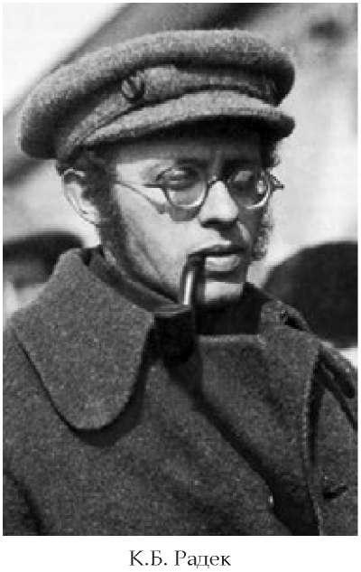 Карл Бернгардович Радек (наст. имя – Кароль Собельсон) (1885–1939) в то время официальных постов не занимал, работал в газетах «Ивестия» и «Правда». Был осужден в 1937 г. по делу «Параллельного антисоветского троцкистского центра». Убит в тюрьме в 1939 г.